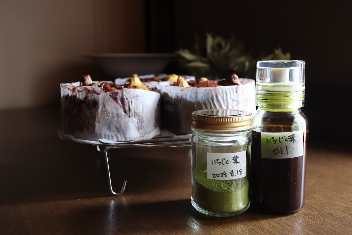 今回、農薬の使用をできるだけ抑えた葉を乾燥・加工し、いちじく葉のパウダーとオイルを製作しました。